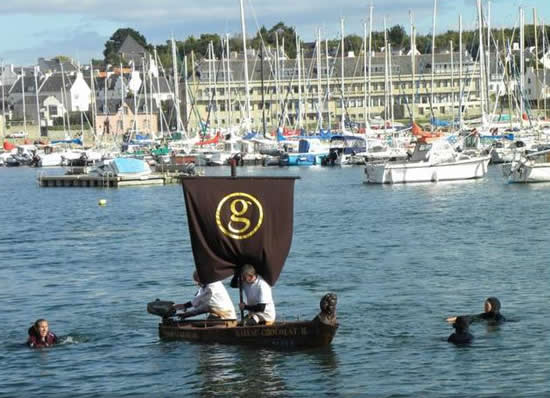 On Saturday, September 25, the walled city of Concarneau, in north-western France, hosted an event unique in the world – the launch of a full size chocolate boat. George Larnicol, the mastermind behind this crazy creation, first attempted to sail a chocolate boat on August 15, but the boat crumbled to pieces when turned over from where it was mounted. But one small failure wasn’t enough to make Larnicol quit, and on Saturday, he returned to Concarneau port, with a new chocolate boat named “Bateau Chocolat II” (French for Chocolate Boat II)